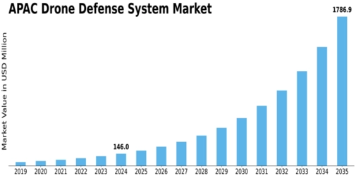 The Asia-Pacific drone defense system market is transforming rapidly as regional governments and private industries confront the growing challenges posed by unmanned aerial systems. With drones now accessible to the masses and increasingly capable of long-range flight, AI-enabled navigation, and payload transport, the need for effective counter-drone solutions has surged. According to MRFR data, the APAC drone defense system market size is projected to grow from USD 146 million in 2024 to USD 1,786.9 million by 2035, registering a powerful CAGR of 25.57% across the forecast period. This strong trajectory highlights how essential drone defense has become to protect sensitive assets and maintain national security.
