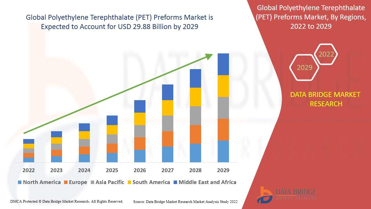 Data Bridge Market Research analyses the polyethylene terephthalate (PET) preforms market will exhibit a CAGR of 5.66% for the forecast period of 2022-2029 and is expected to reach the USD 29.88 billion by 2029.