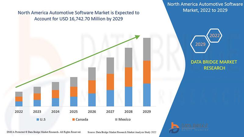 Data Bridge Market Research analyses that the automotive software market is expected to reach the value of USD 16,742.70 million by 2029, at a CAGR of 17.6% during the forecast period. The North America Automotive Software Market report puts light on the change in the market which is taking place due to the moves of key players and brands such as product launches, joint ventures, mergers and acquisitions that in turn modifies the view of the global face of North America Automotive Software Market industry. This market report takes into account myriad of aspects of the market analysis which today’s businesses call for. To make the report outstanding, most up-to-date and advanced tools and techniques are used so that client achieves maximum benefits. The North America Automotive Software Market report also includes the market drivers and market restraints that are derived from SWOT analysis.