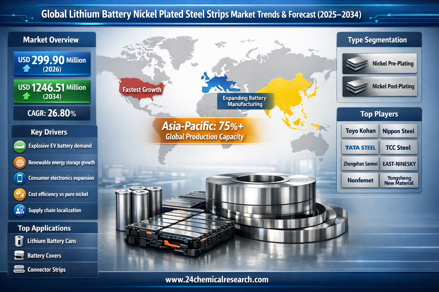 Get Full Report Here: https://www.24chemicalresearch.com/reports/264251/global-lithium-battery-nickel-plated-steel-strips-market-2024-9