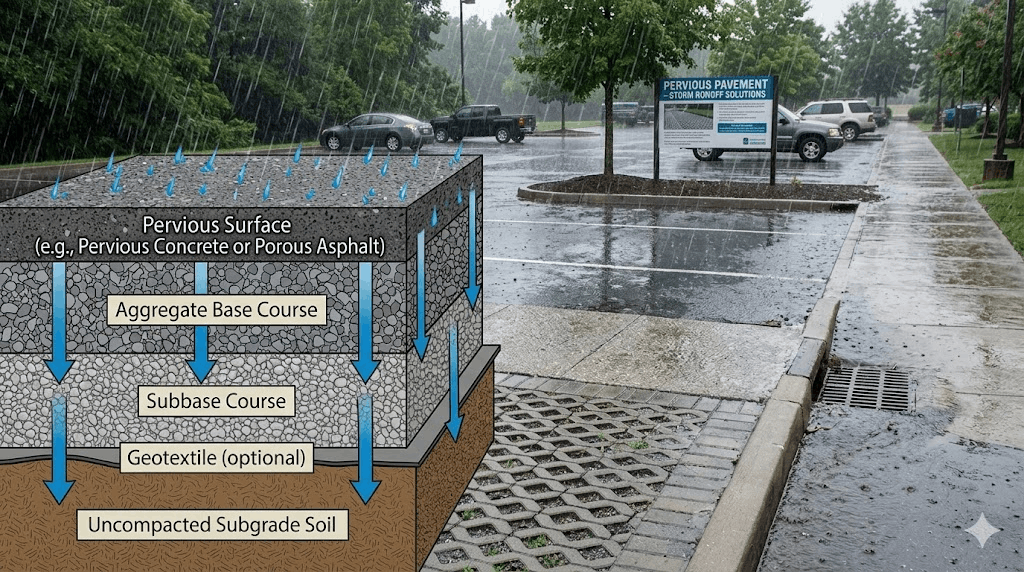 Two primary forces are driving growth in the pervious pavement market. First, increasing concern over stormwater and hot water management is pushing municipalities and developers to adopt permeable surface solutions. As cities expand and impervious surfaces multiply, managing stormwater runoff has become a critical urban challenge. Pervious pavement offers an effective and aesthetically flexible solution by allowing water to infiltrate directly through its surface, reducing the strain on drainage infrastructure.