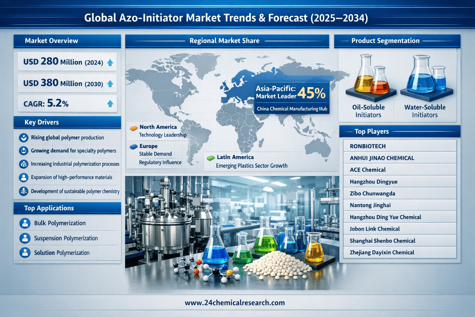 This comprehensive analysis of the global Azo-initiator market provides detailed insights from 2024 through 2030, with particular emphasis on: