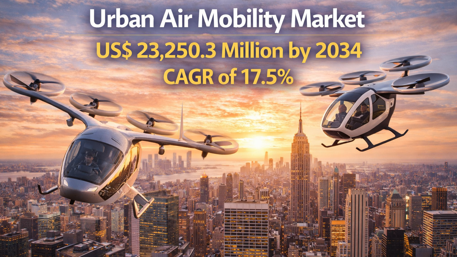 The financial projections for this evolution are robust. The urban air mobility market is expected to valued at US$ 6,384.9 Million in 2025 and is projected to reach US$ 23,250.3 Million by 2034, and is expected to grow at a CAGR of 17.5% during the forecast period of 2025 to 2034.