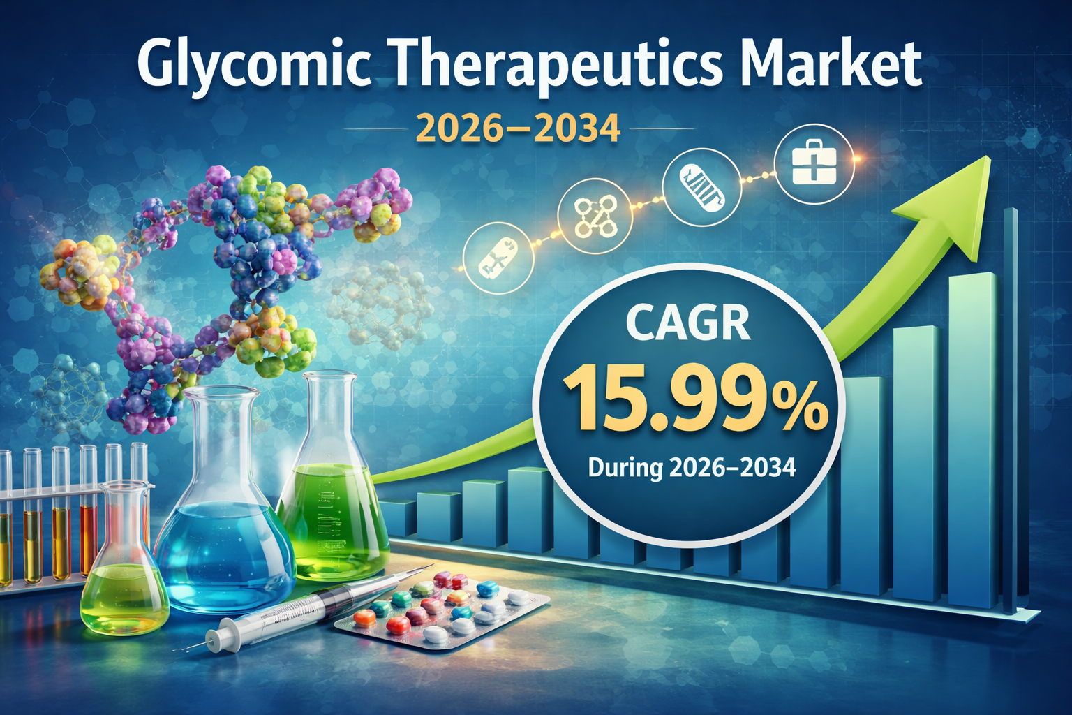 The Global Glycomic Therapeutics Market is projected to grow significantly from US$ 179.21 billion in 2025 to US$ 680.86 billion by 2034, registering an impressive CAGR of 15.99% during the forecast period (2026–2034). This robust growth trajectory is driven by the increasing adoption of precision medicine, rising prevalence of chronic diseases, and expanding applications of glycan-based therapeutics in modern healthcare.