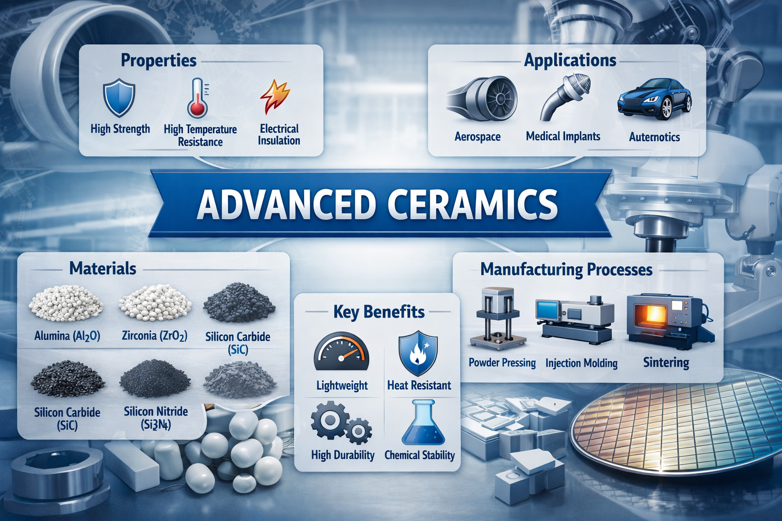 - Adoption of ceramics in automotive, aerospace, electronics, and medical devices