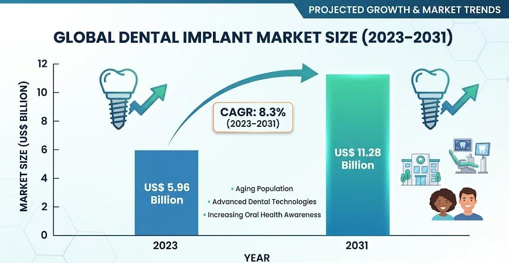 The dental implant industry across North America continues to experience strong expansion due to advanced healthcare systems, rising awareness of oral health, and increasing adoption of modern dental technologies. Tooth replacement procedures have become an important part of restorative dentistry as patients seek long term solutions for missing teeth. Dental implants offer improved durability, functionality, and aesthetic outcomes compared with traditional dentures or bridges, which makes them a preferred treatment option for both dentists and patients.