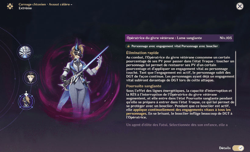 Lorsque l’opératrice active la fonction d’élimination rapide, un bouclier neutre d’une puissance équivalente à 22,5 % de ses points de vie maximum se déploie immédiatement. Cependant, une fois ce bouclier détruit, elle subit une réduction de 22,5 % de ses PV, ce qui n’influence pas directement les dégâts nécessaires pour venir à bout de l’ennemi.